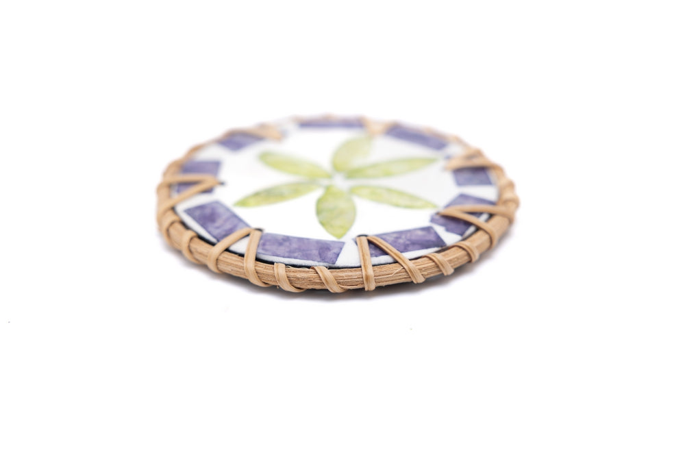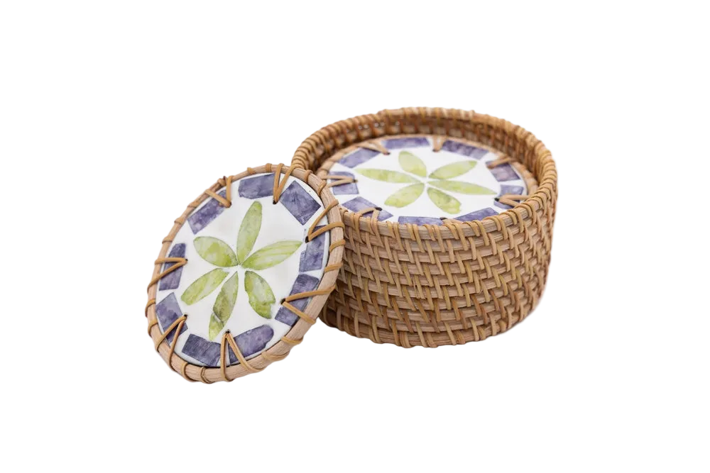 Handcrafted rattan coasters that bring natural texture and warmth to any table setting. Model D features a refined weave pattern that complements both contemporary and traditional décor. Each coaster is individually crafted from sustainable rattan, offering durability and water resistance for daily use. The natural material develops a subtle patina over time, enhancing its character. Perfect for protecting surfaces while adding an artisanal touch to your home.